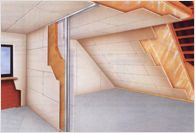 Dachgeschossausbau mit Wohnbauplatten. Diese Wohnbauplatten können sowohl zur Bekleidung von Dachschrägen und Kehlbalkendecken als auch zum Bau von Trennwänden eingesetzt werden.